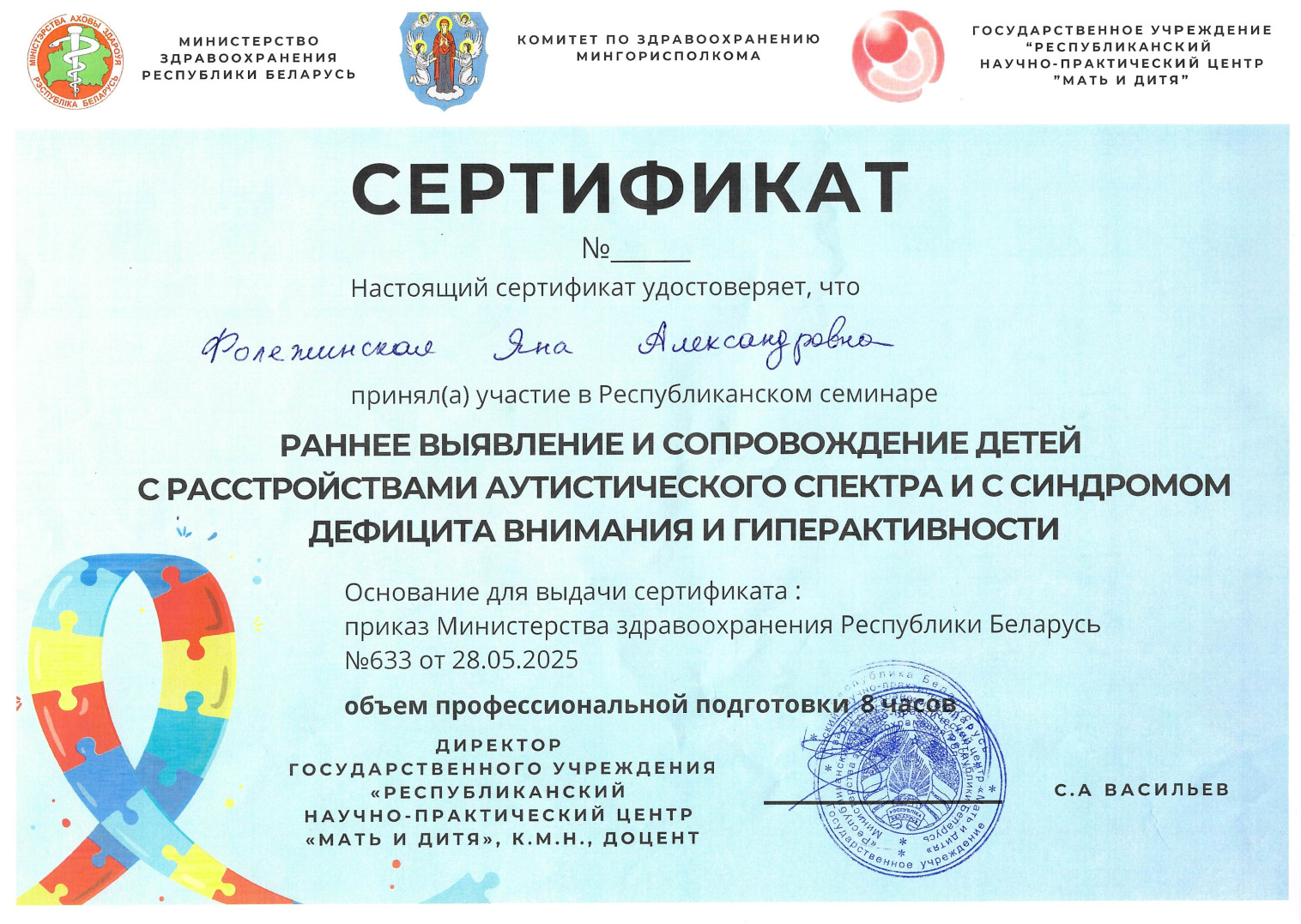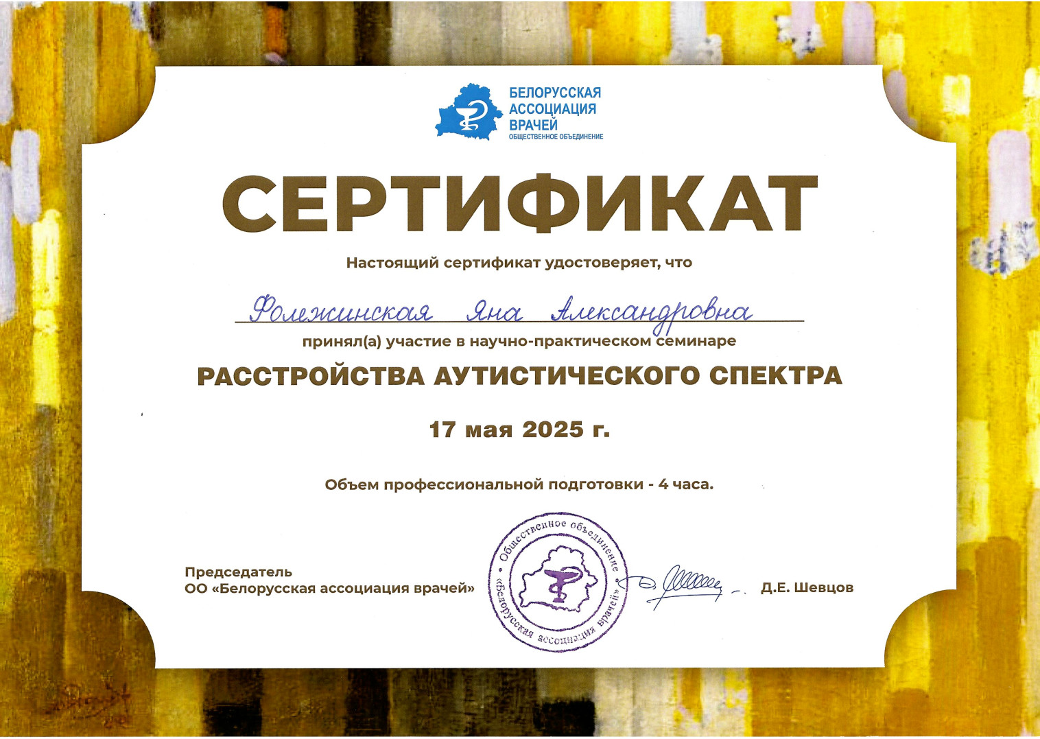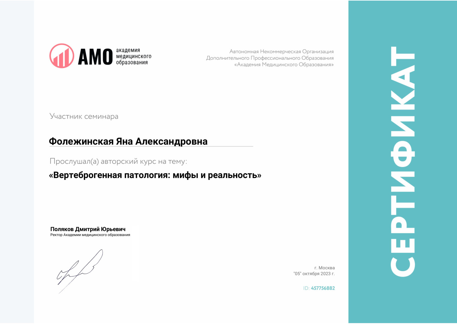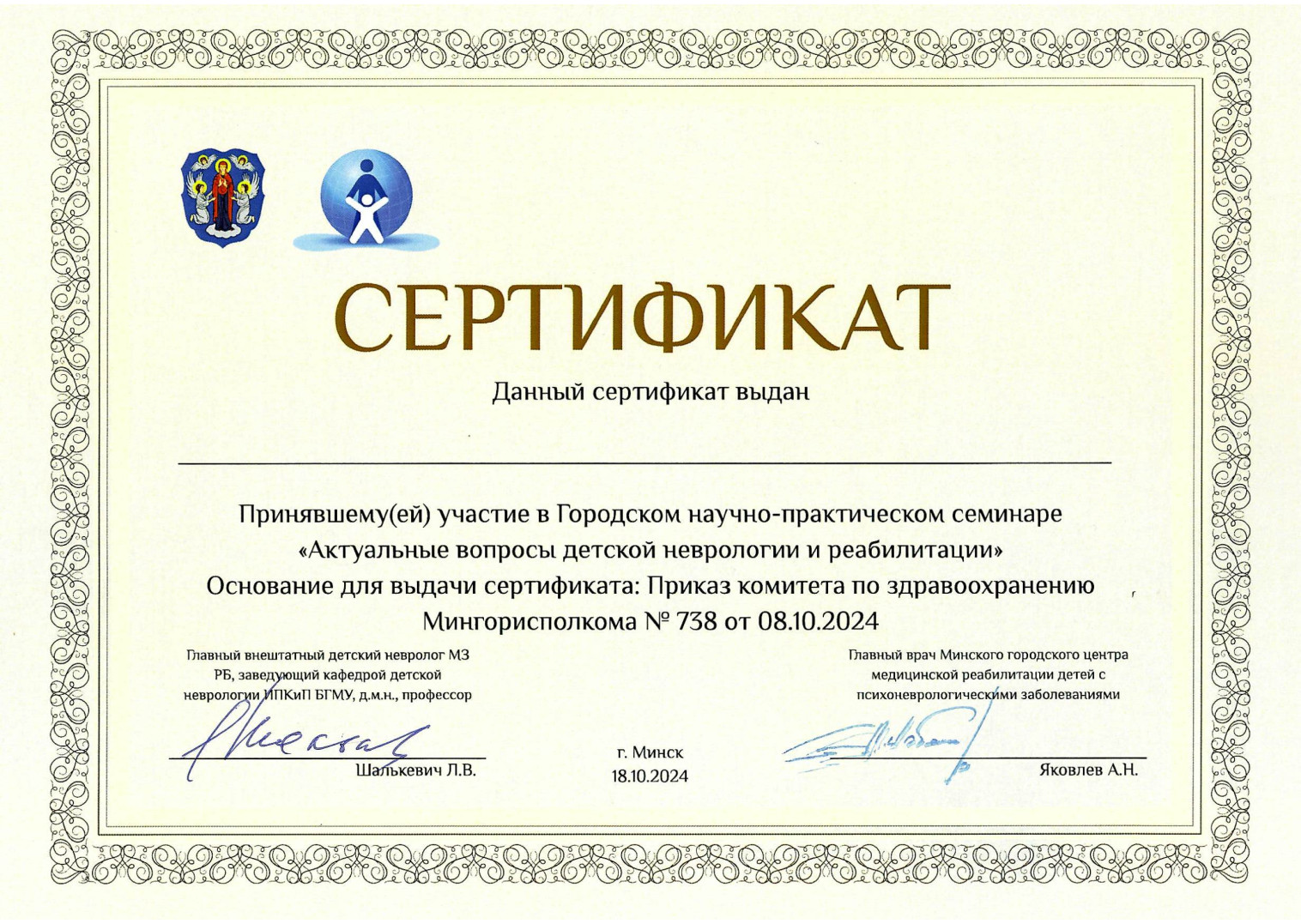 2023 г. — Интернатура по специальности «Неврология (детская)»
