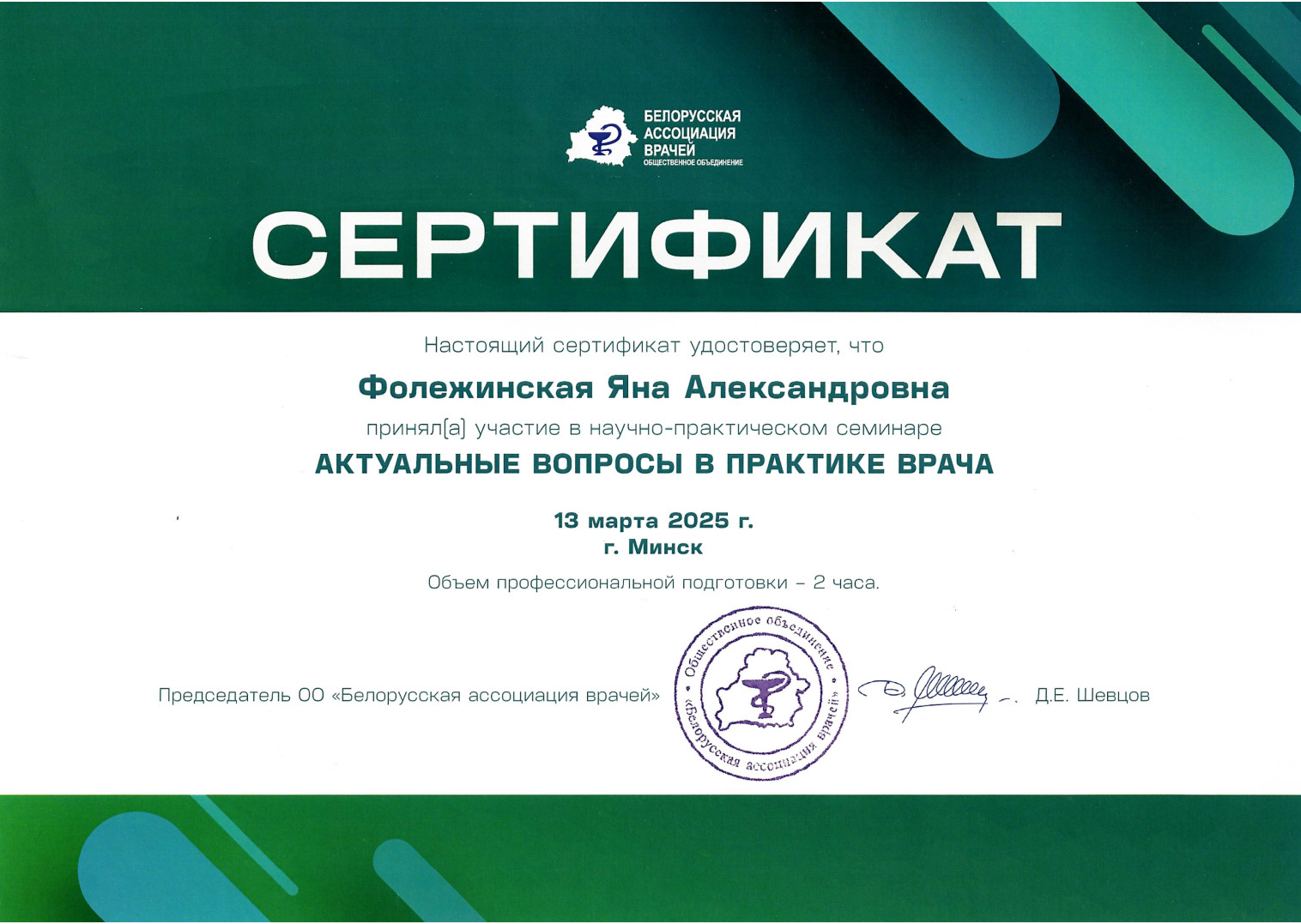с 2023 г. — Врач-детский невролог неврологического кабинета УЗ «6-я городская детская клиническая поликлиника»