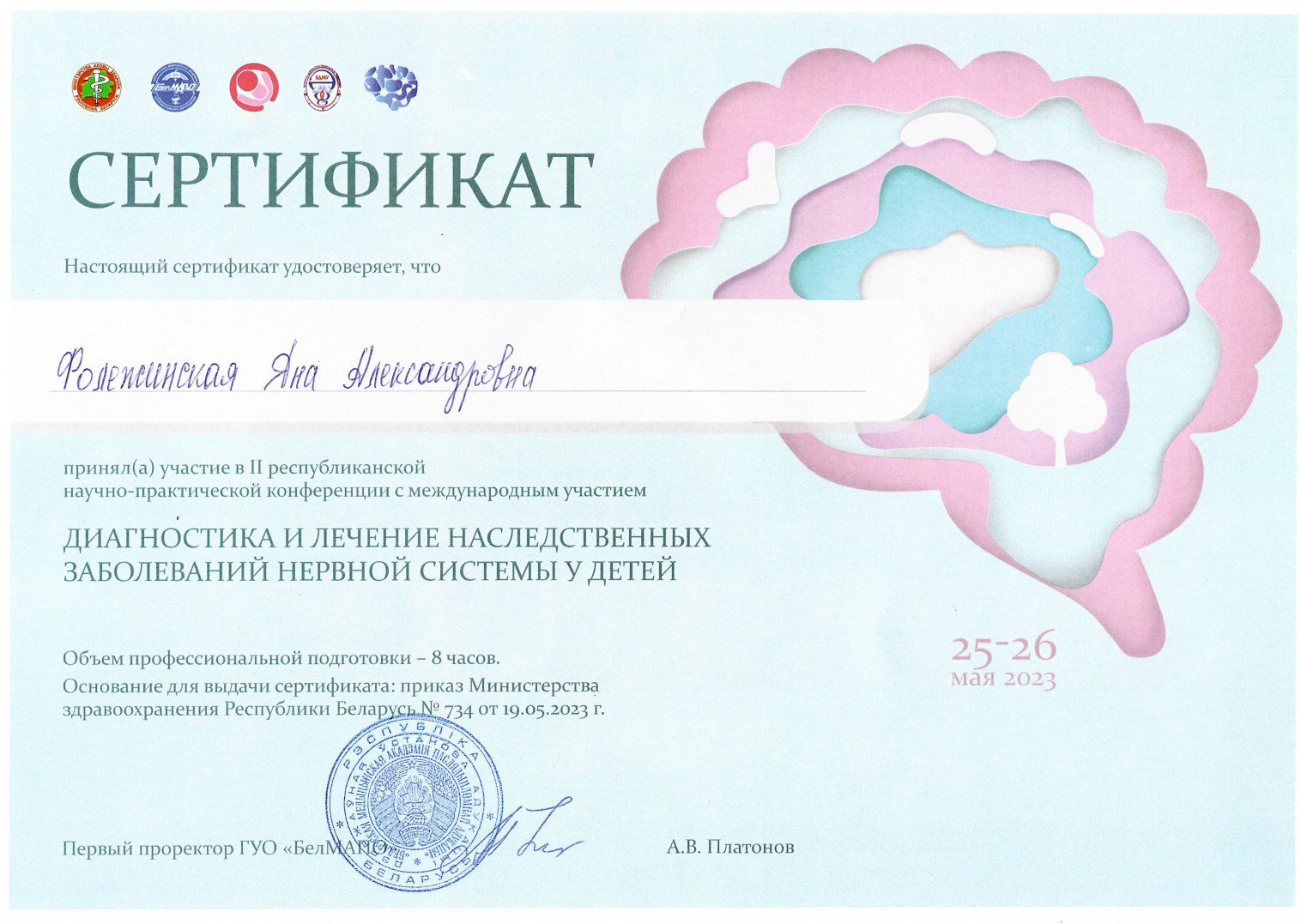 2023 г. — Курсы повышения квалификации по программе «Эпилепсия и другие пароксизмальные нарушения в детском возрасте»