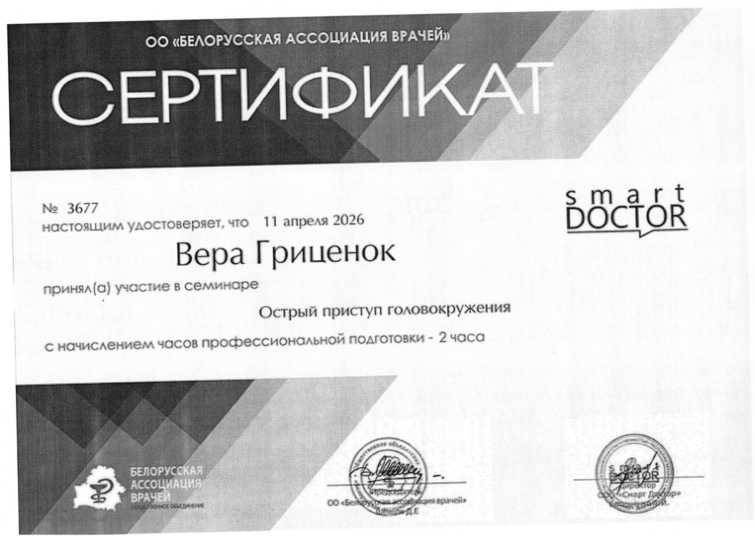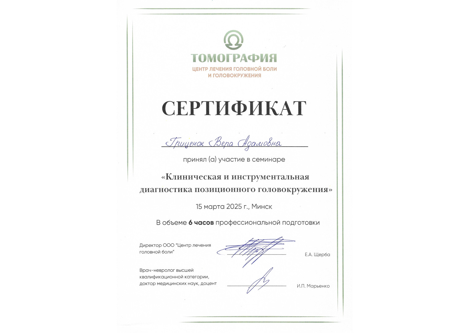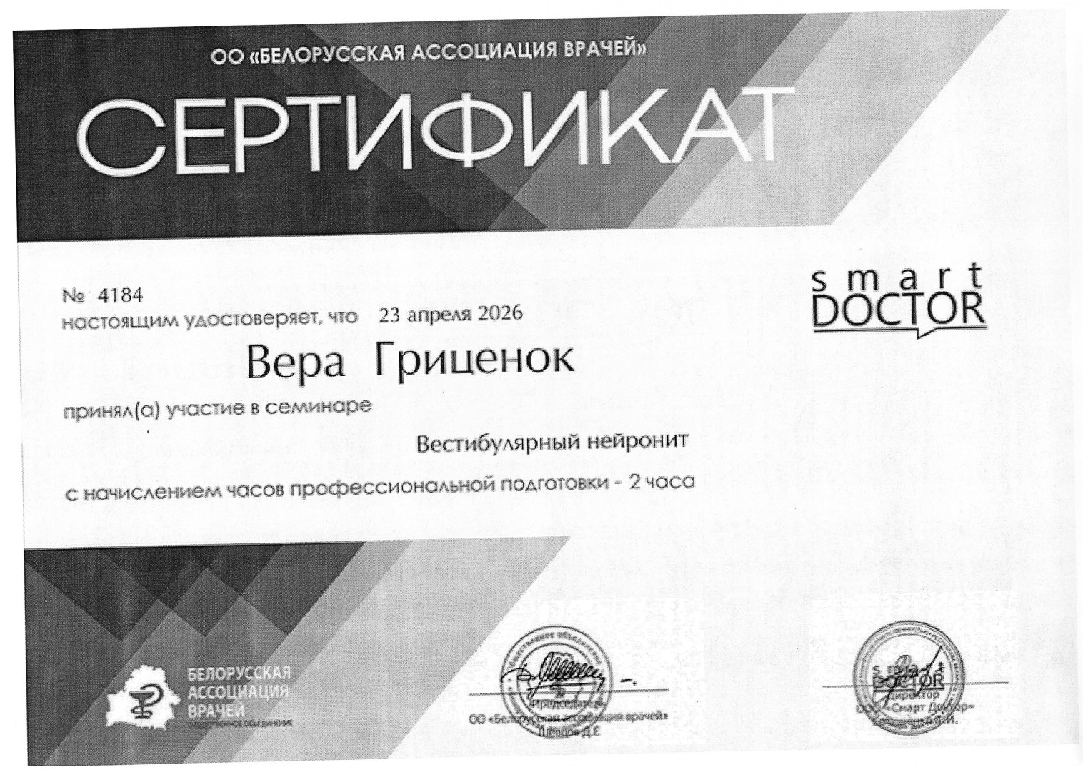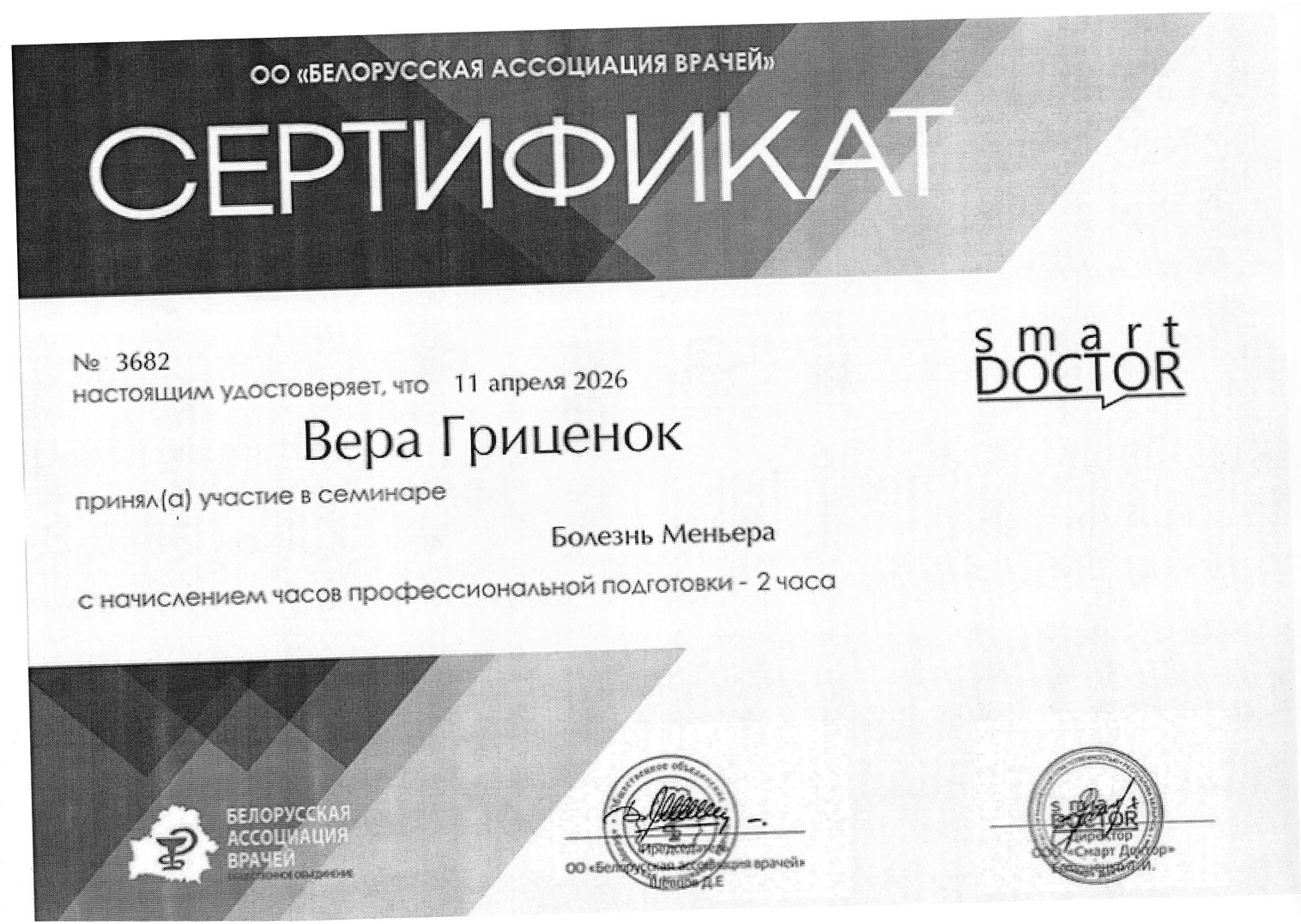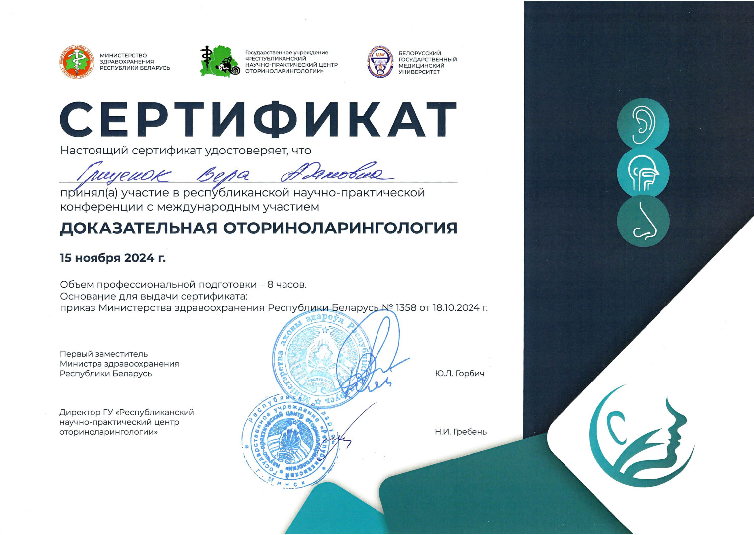 2024 г. — Курсы повышения квалификации по программе «Диагностика и лечение слуховых нарушений»
