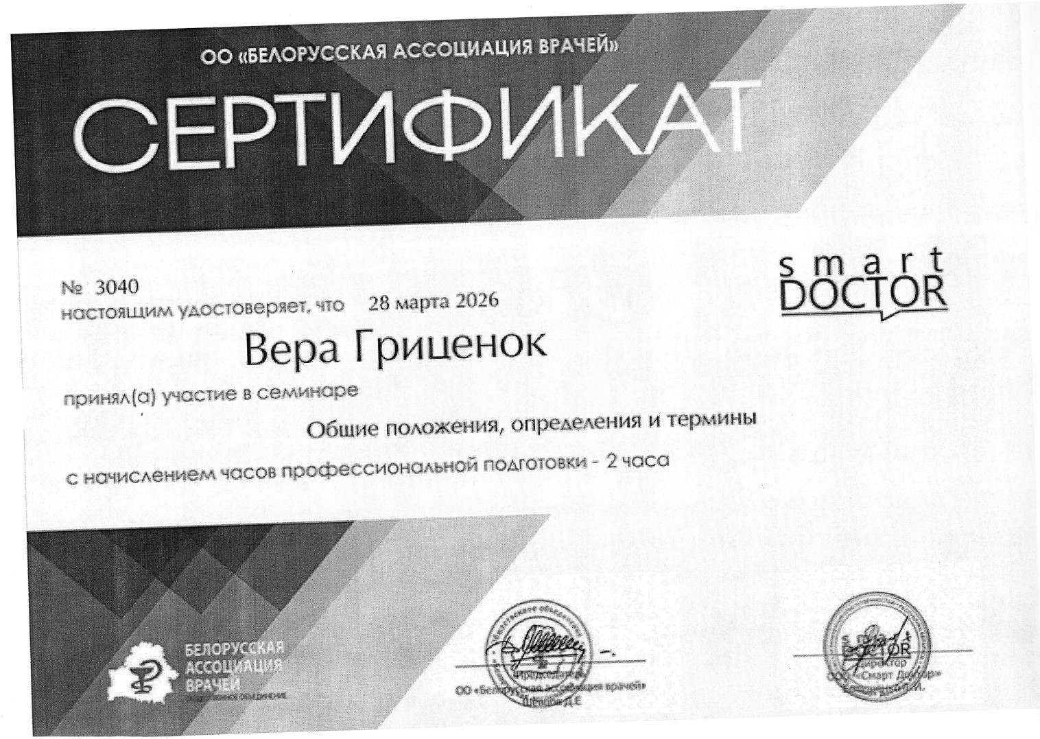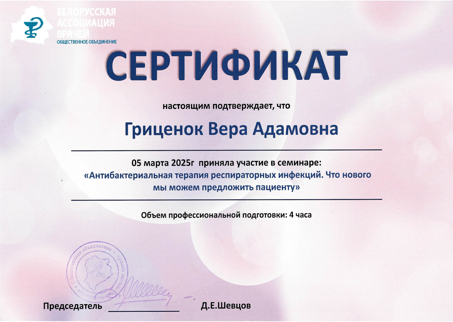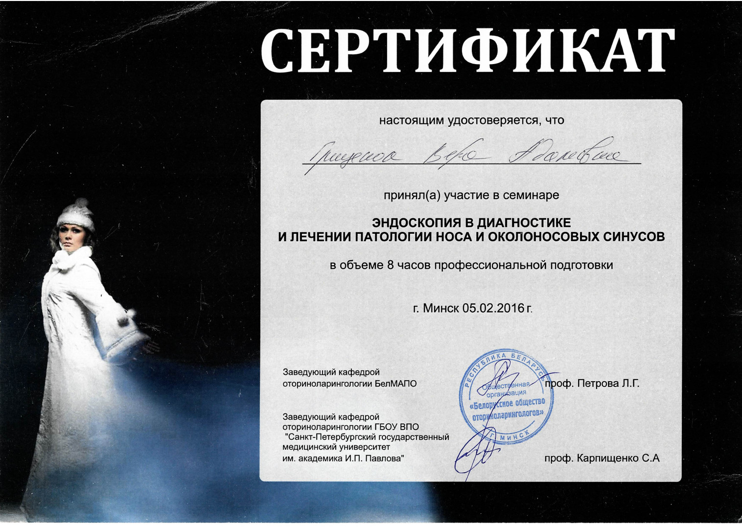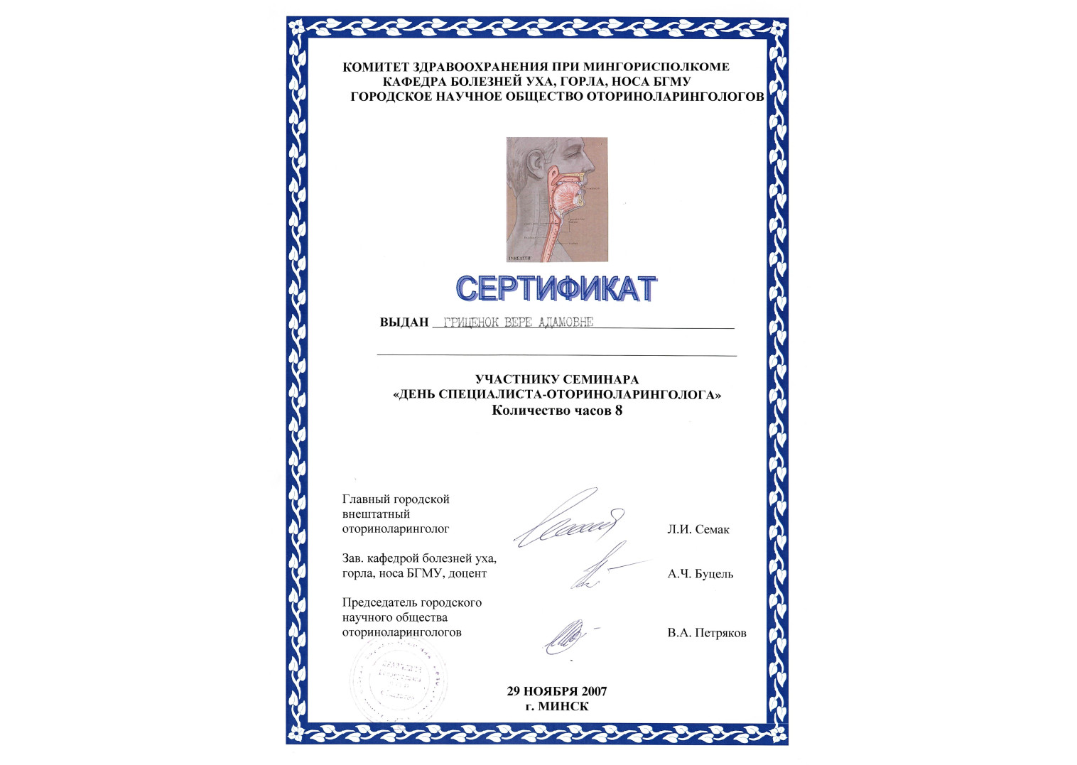 2008 г. — Курсы повышения квалификации по программе «Новые технологии диагностики и лечения в ринологии»