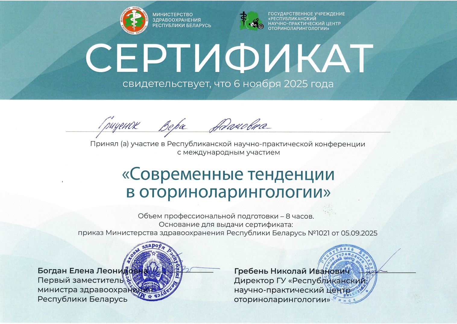 2011 г. — Стажировка по специальности «Оториноларингология»