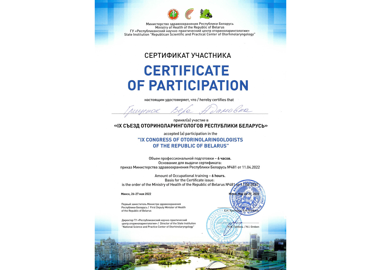1998 г. — Стажировка по специальности «Оториноларингология»