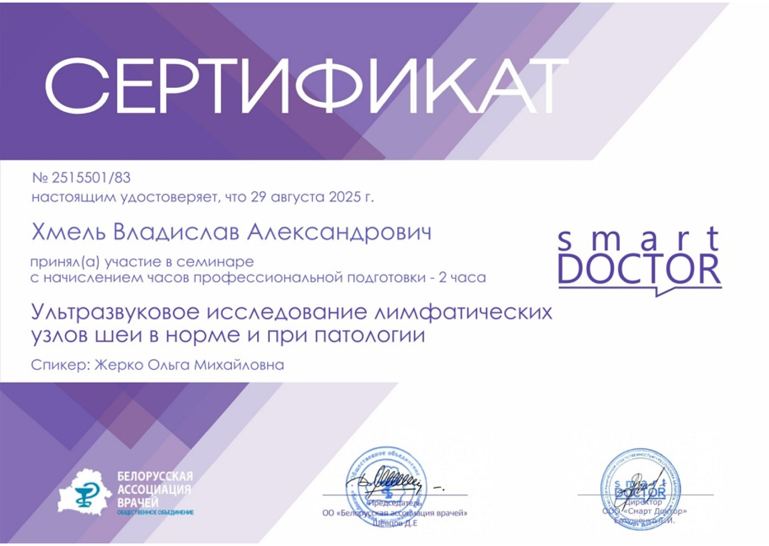 2025 г. — Курсы повышения квалификации по программе «Ультразвуковое исследование в диагностике патологии вен нижних конечностей»
