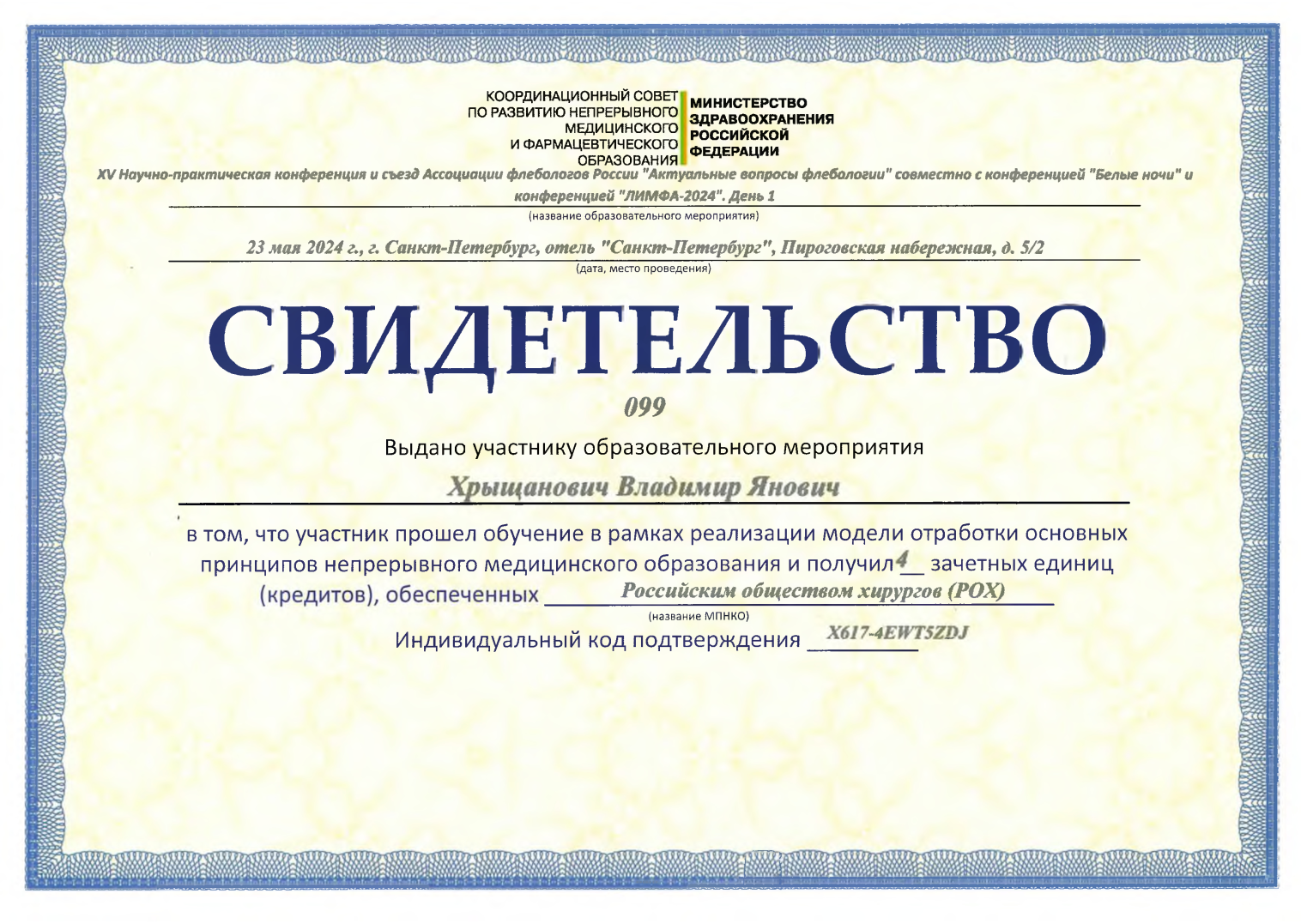 2023 г. — Переподготовка по специальности «Рентгенэндоваскулярная хирургия»