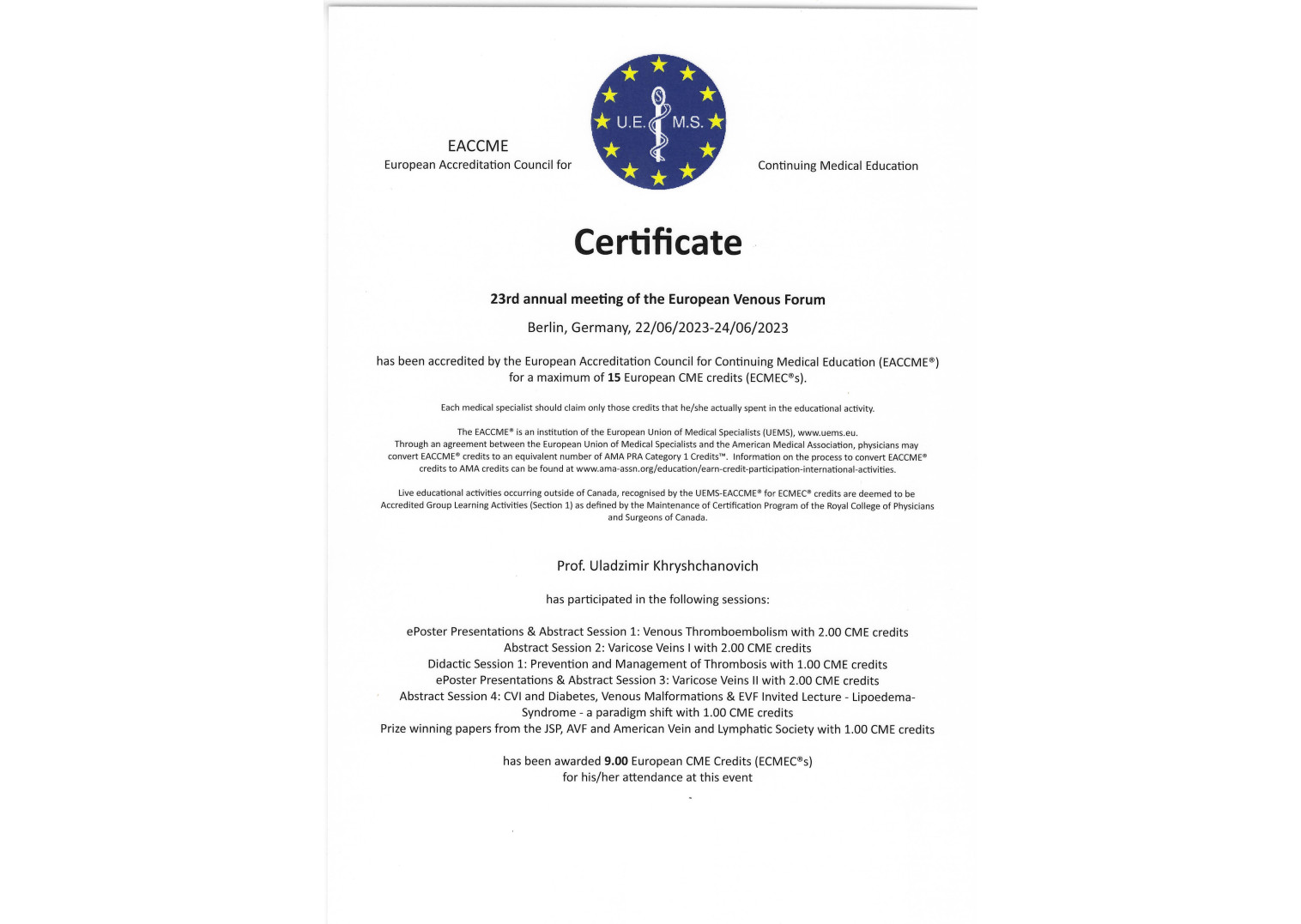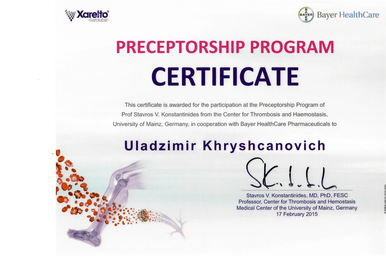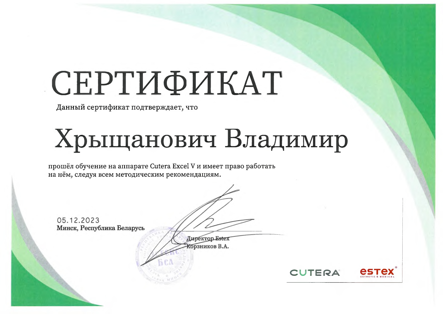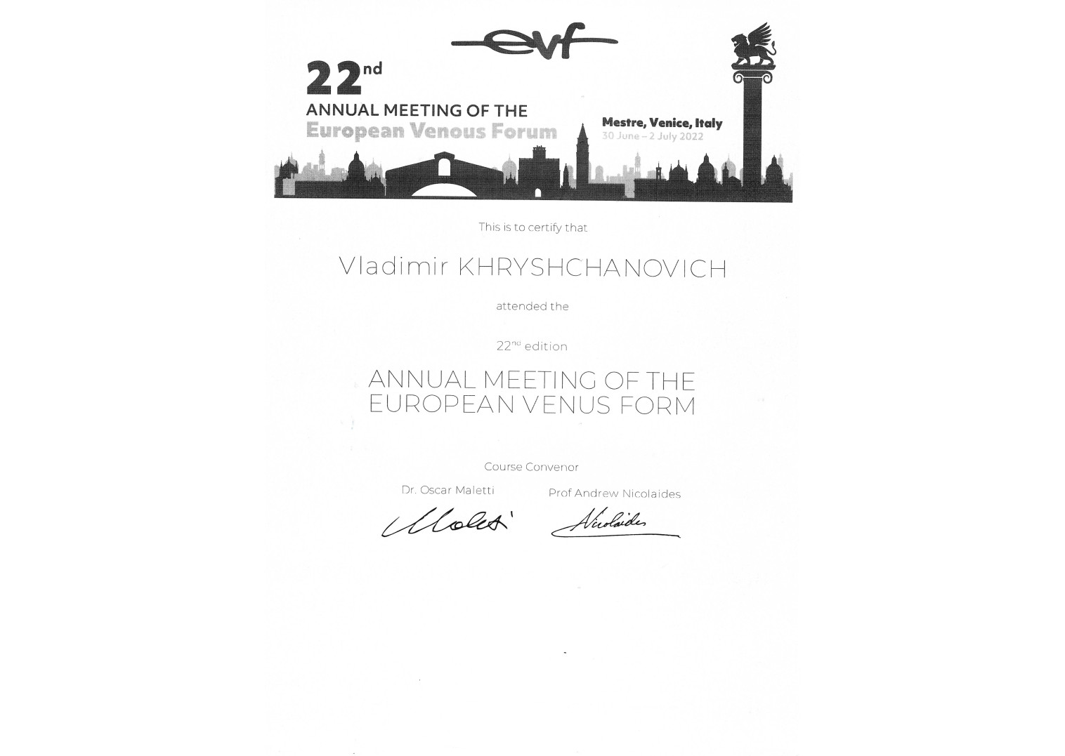 2009 г. — Курсы повышения квалификации по программе «Миниинвазивная флебология со склеротерапией»