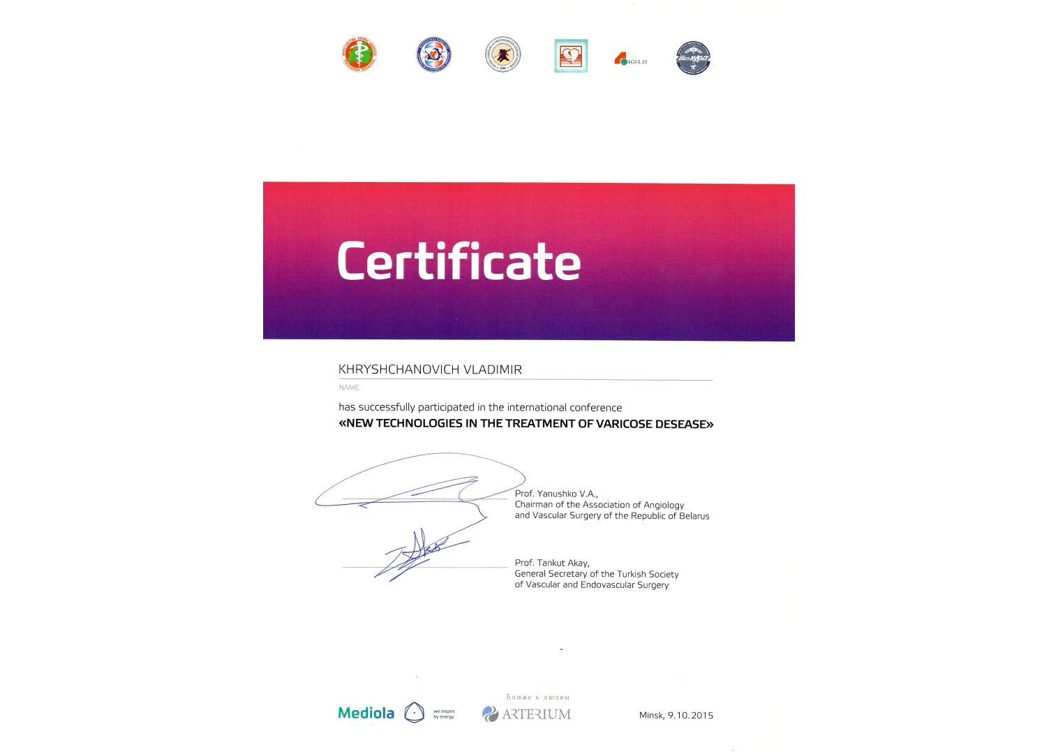 2015 г. — Переподготовка по специальности «Сосудистая хирургия»