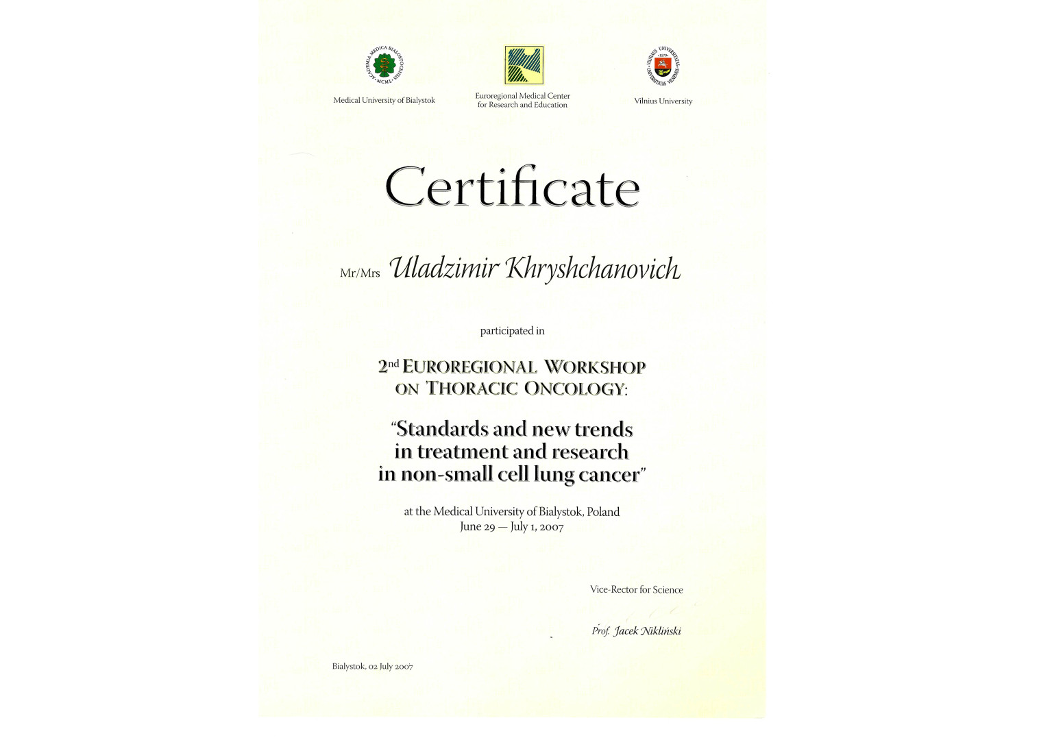 2007 г. — Курсы повышения квалификации по программе «Диагностическая и лечебная эндоскопия»