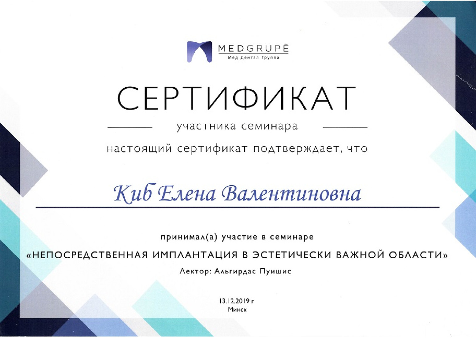 2018 г. — Курсы повышения квалификации по программе «Современные принципы лечения воспалительных заболеваний и травм челюстно-лицевой области»