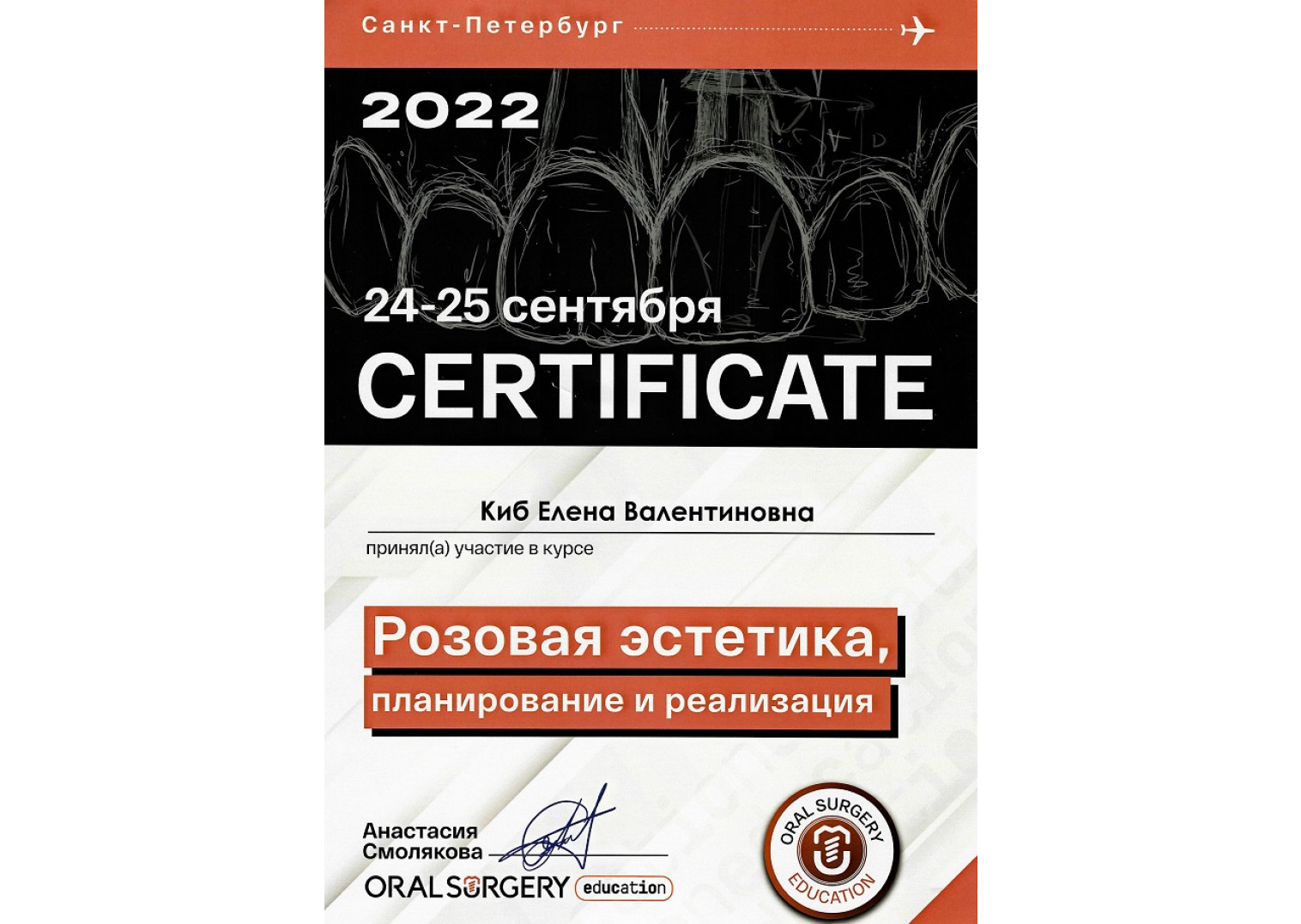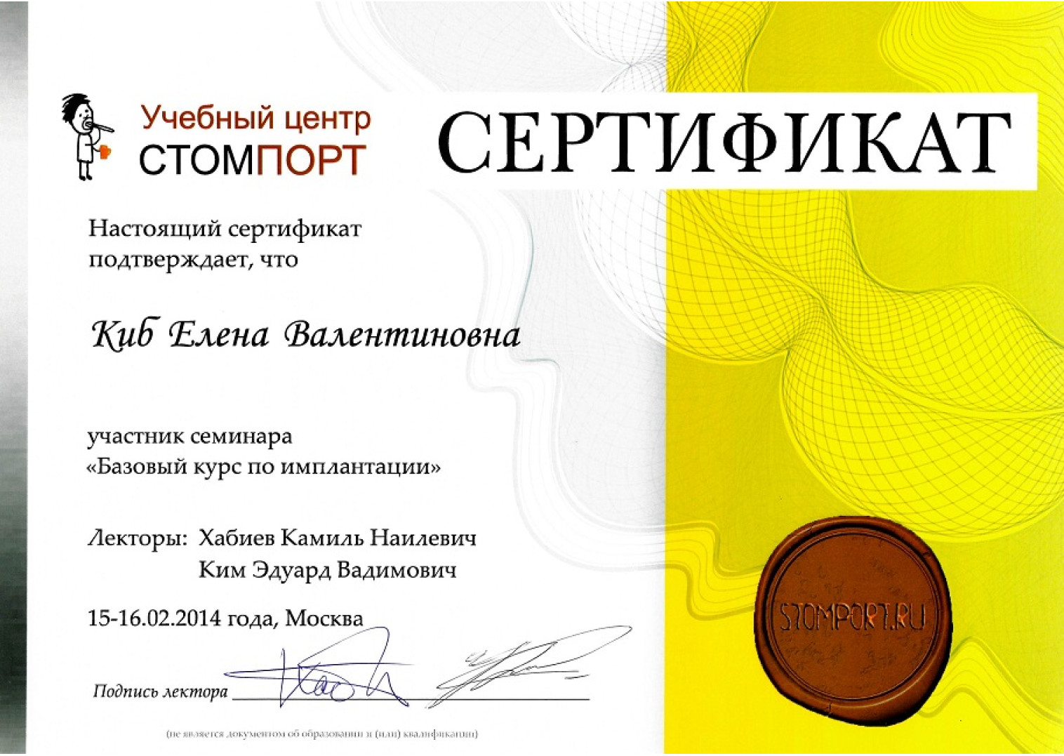 2008 г. — Переподготовка по программе «Стоматология хирургическая»