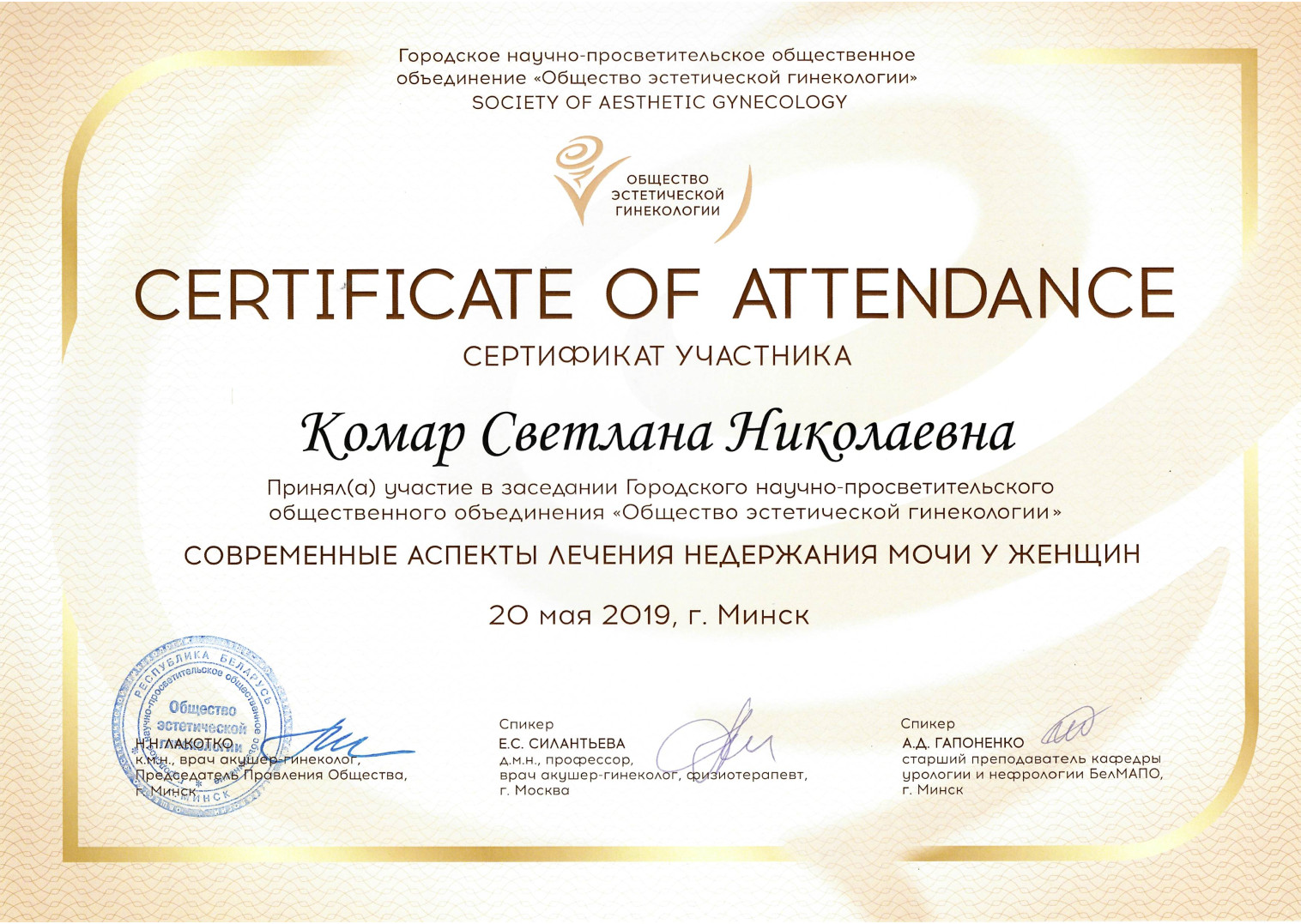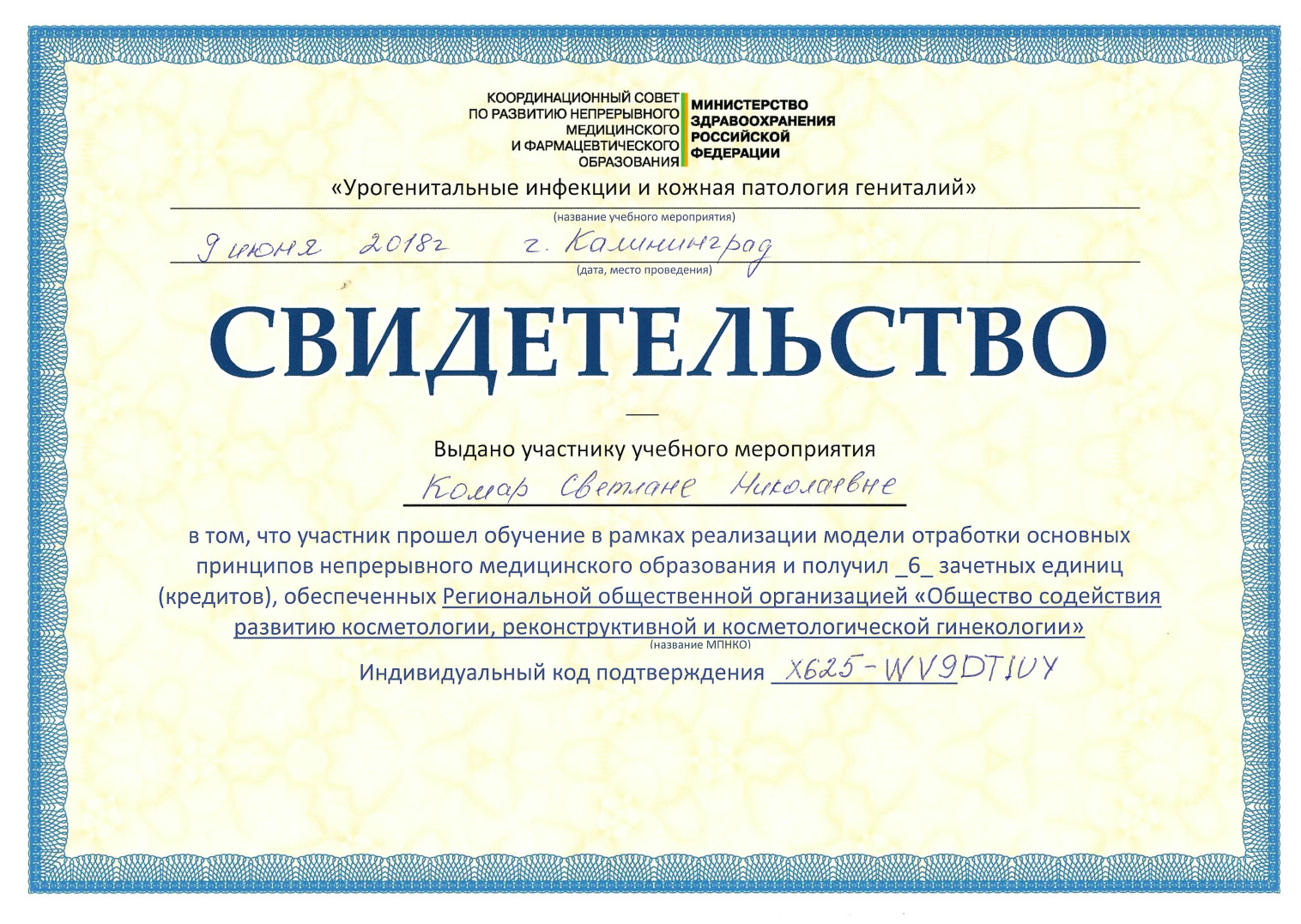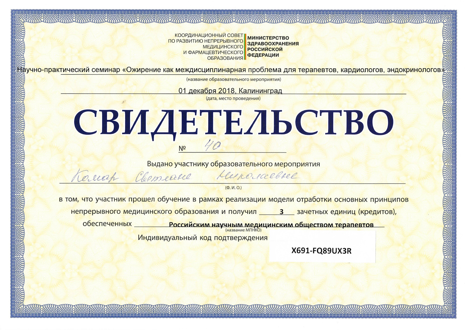 2021 г. — Курсы повышения квалификации по программе «Современные методы диагностики и лечения гинекологических заболеваний в различные периоды жизни женщины с курсом гинекологической эндокринологии»