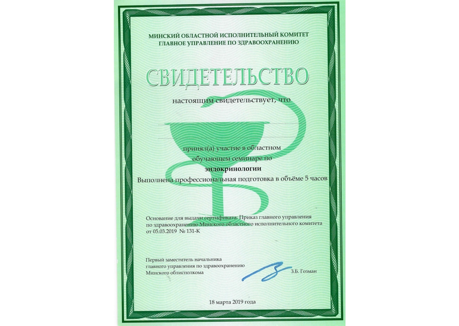 2009 г. — Переподготовка по специальности «Эндокринология»