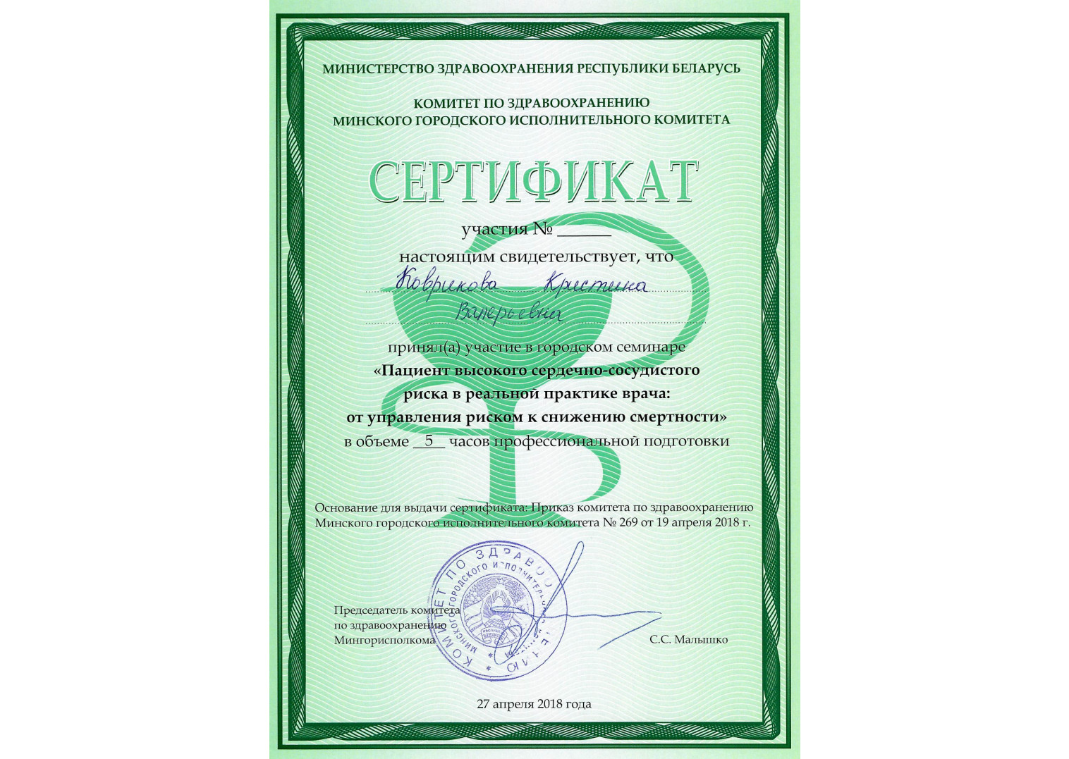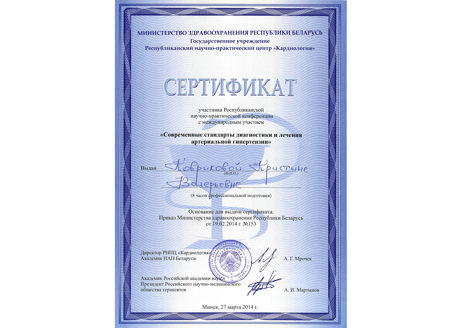 2024 г. — Курсы повышения квалификации по программе «Диагностика и лечение эндокринных заболеваний»