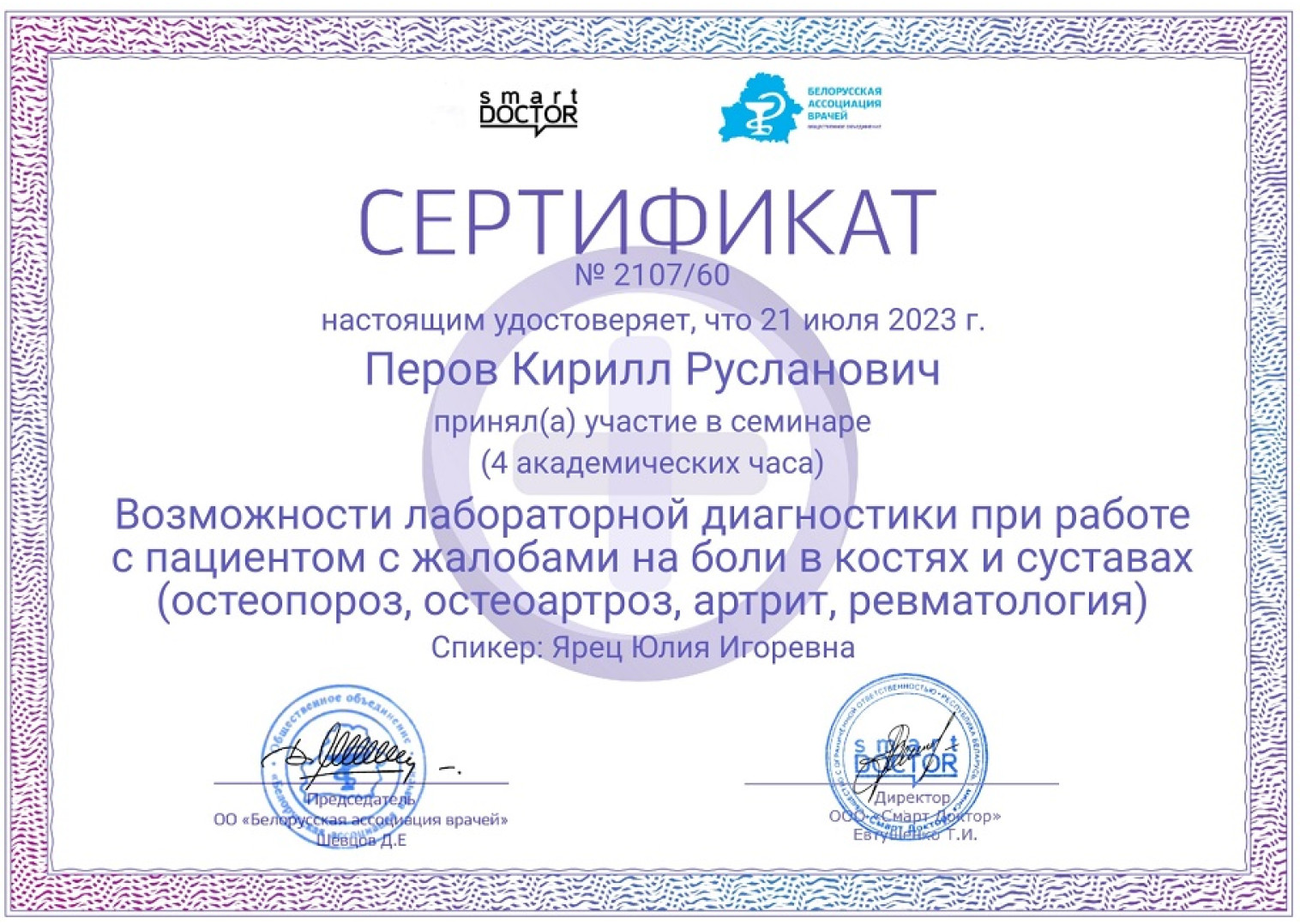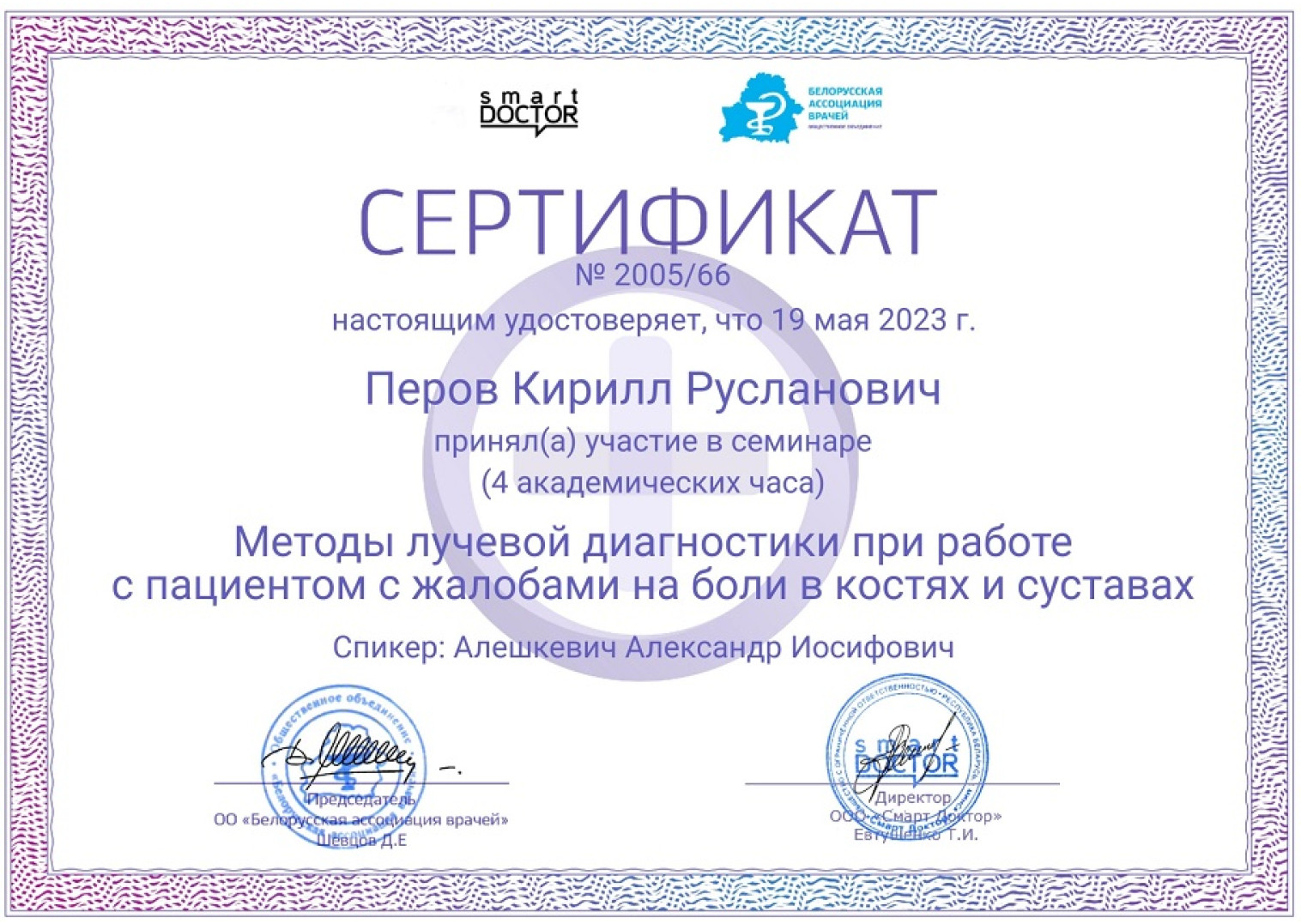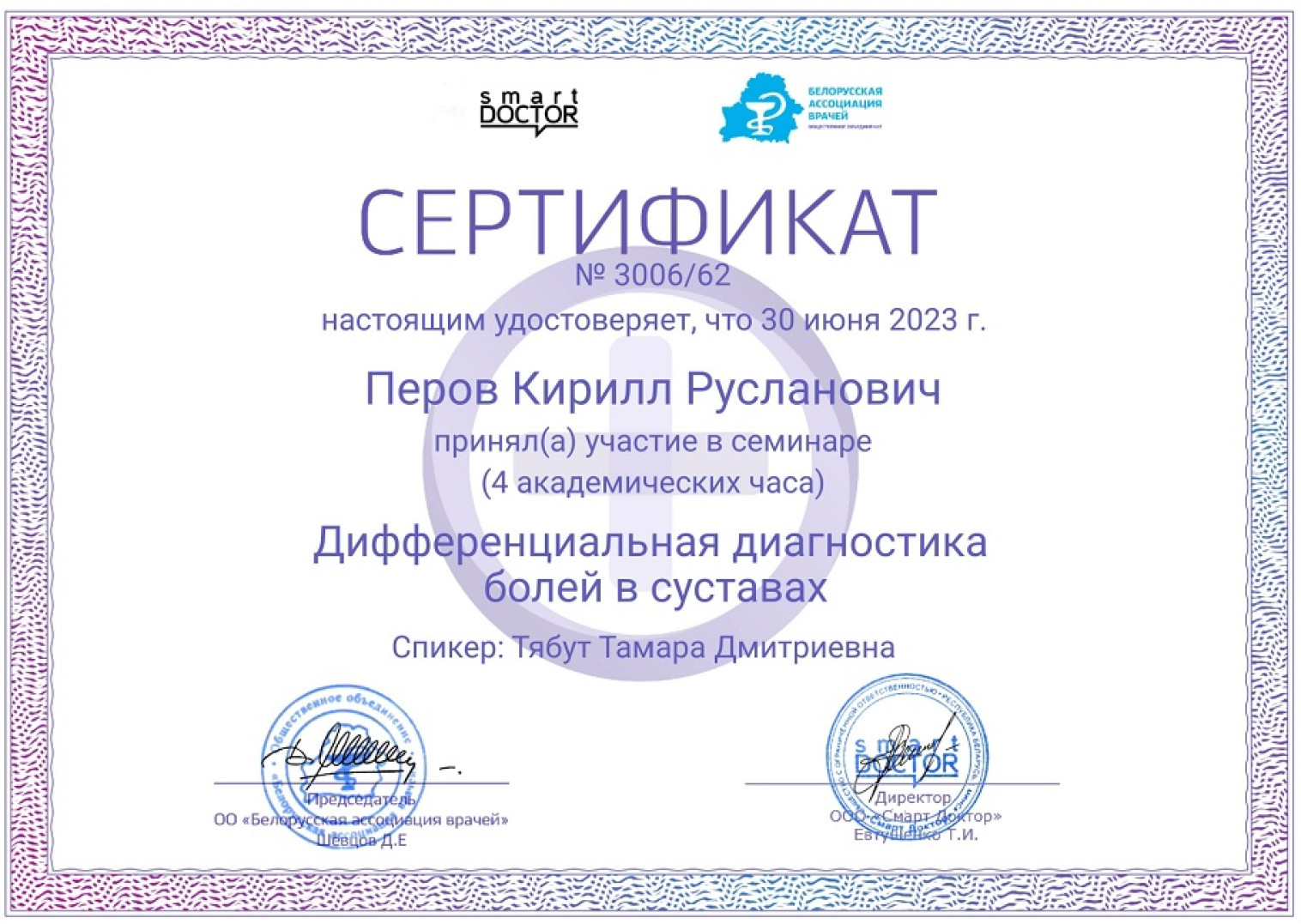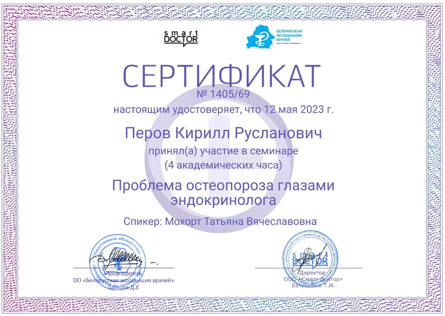 2023 г. — Курсы повышения квалификации по программе «Ультразвуковая ангиология»